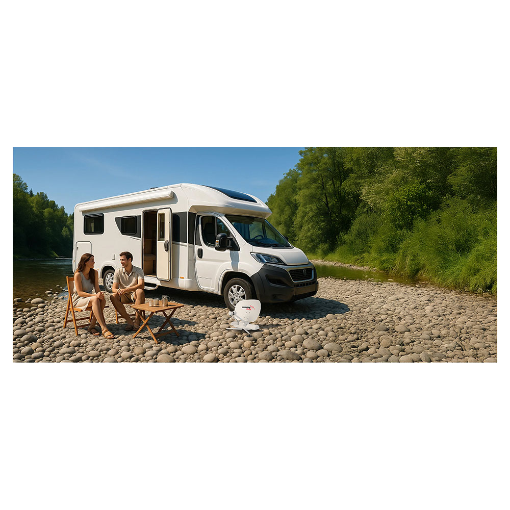 Die Satmex mobil 3 ist eine vollautomatische Satellitenantenne, die speziell für den mobilen Einsatz entwickelt wurde. Ob beim Camping, im Wohnmobil oder im Garten – die Antenne ist in wenigen Handgriffen aufgestellt und sofort einsatzbereit. Eine aufwendige Montage oder manuelle Justierung ist nicht erforderlich.