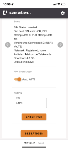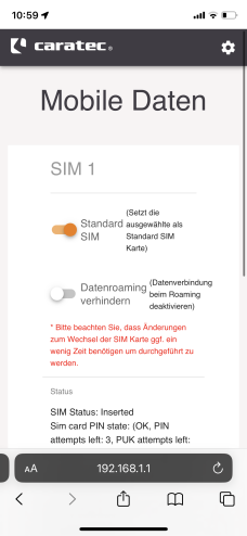 - Auswahl Internetzugang per externem WiFi oder Mobilfunk