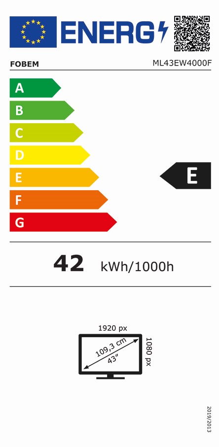 - Jährlicher Energieverbrauch [kWh/Jahr] 42 (auf der Grundlage eines täglich vierstündigen Betriebs des Fernsehgerätes an 365 Tagen. Der tatsächliche Energieverbrauch hängt von der Art der Nutzung des Fernsehgerätes ab.)