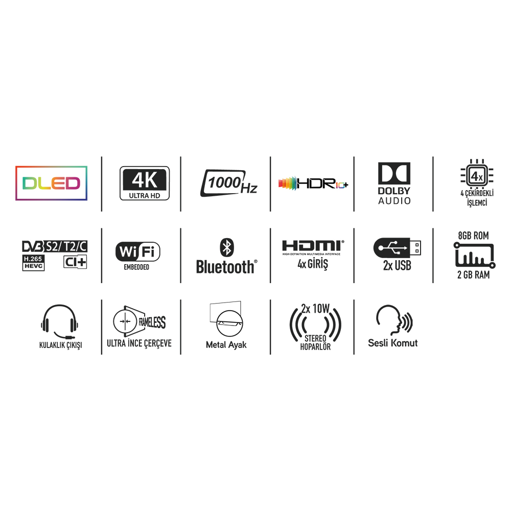 Dank des eingebauten Satellitenempfängers können Sie problemlos Satellitenkanäle ansehen, ohne zusätzliche Geräte zu benötigen. Verbessern Sie Ihre visuelle Qualität mit helleren und lebendigeren Farben, tieferen Schwarztönen und Kontrasten mit HDR-Unterstützung