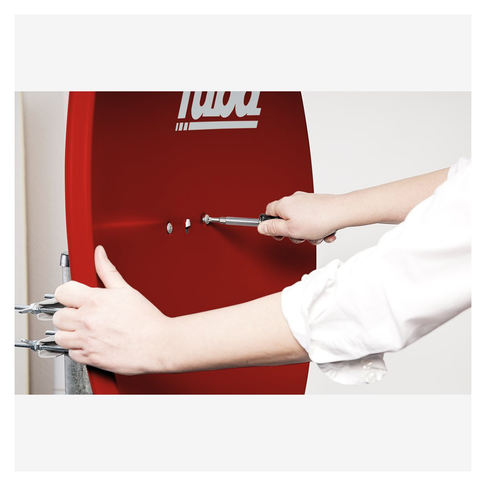 Die DAL 800 überzeugt mit einer LNB-Halterung und einem massiven Rückenteil aus Alunminium-Druckguss. Die sehr montagefreundliche Antenne ist in nur wenigen Schritten aufgebaut und verfügt über einen ausklappbaren Feedarm. Das Rückenteil, der Feedarm und die Masthalterung sind bereits vormontiert.