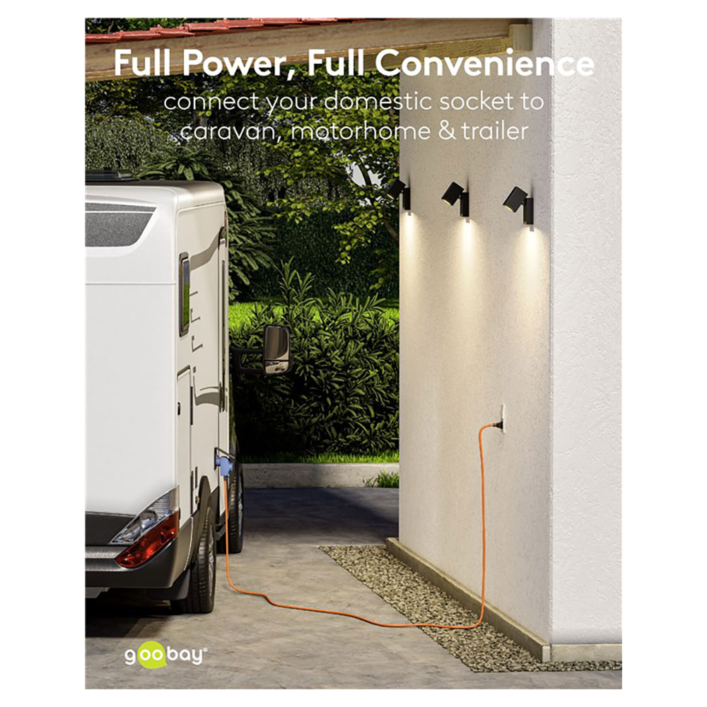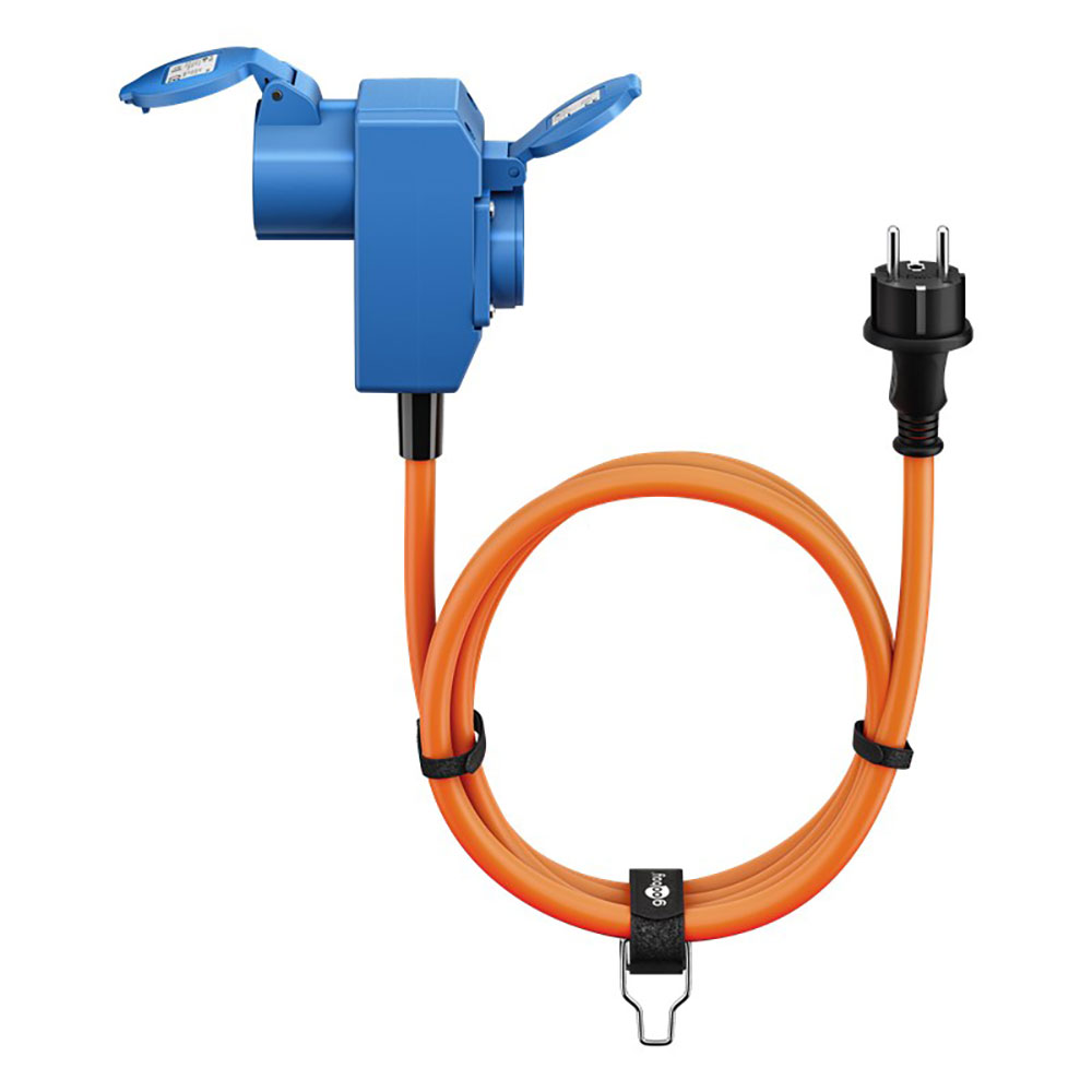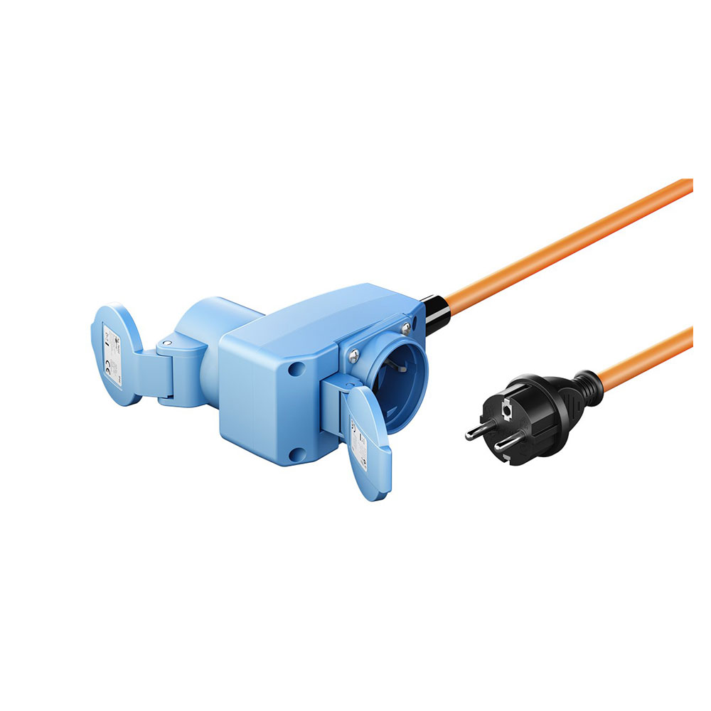 - Die orange Signalfarbe des Stromkabels sorgt für erhöhte Sichtbarkeit und erfüllt die Sicherheitsstandards auf internationalen Campingplätzen