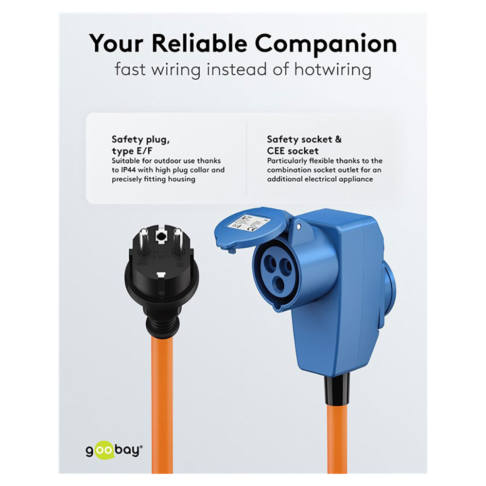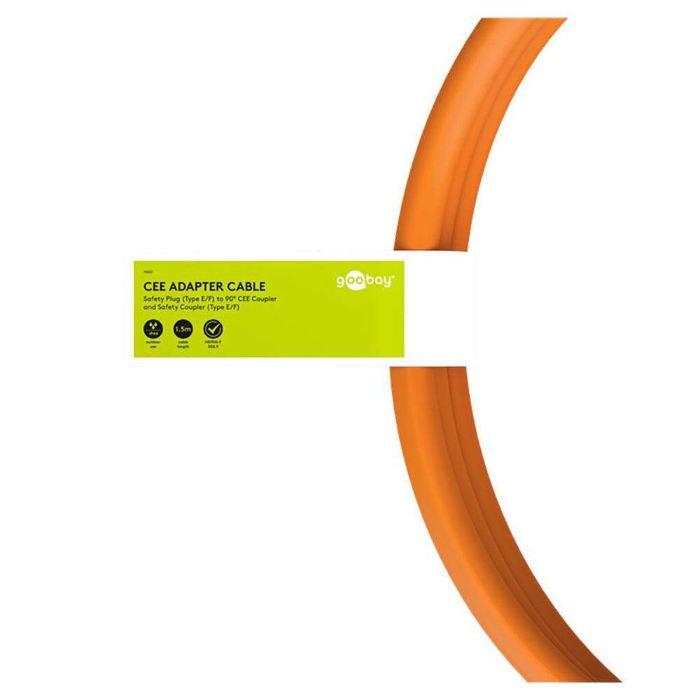 Produktinformationen "Goobay CEE-Adapterleitung Schutzkontakt-Stecker auf 90° CEE-Kupplung und Schutzkontakt-Kupplung, 1,5 m 230V"