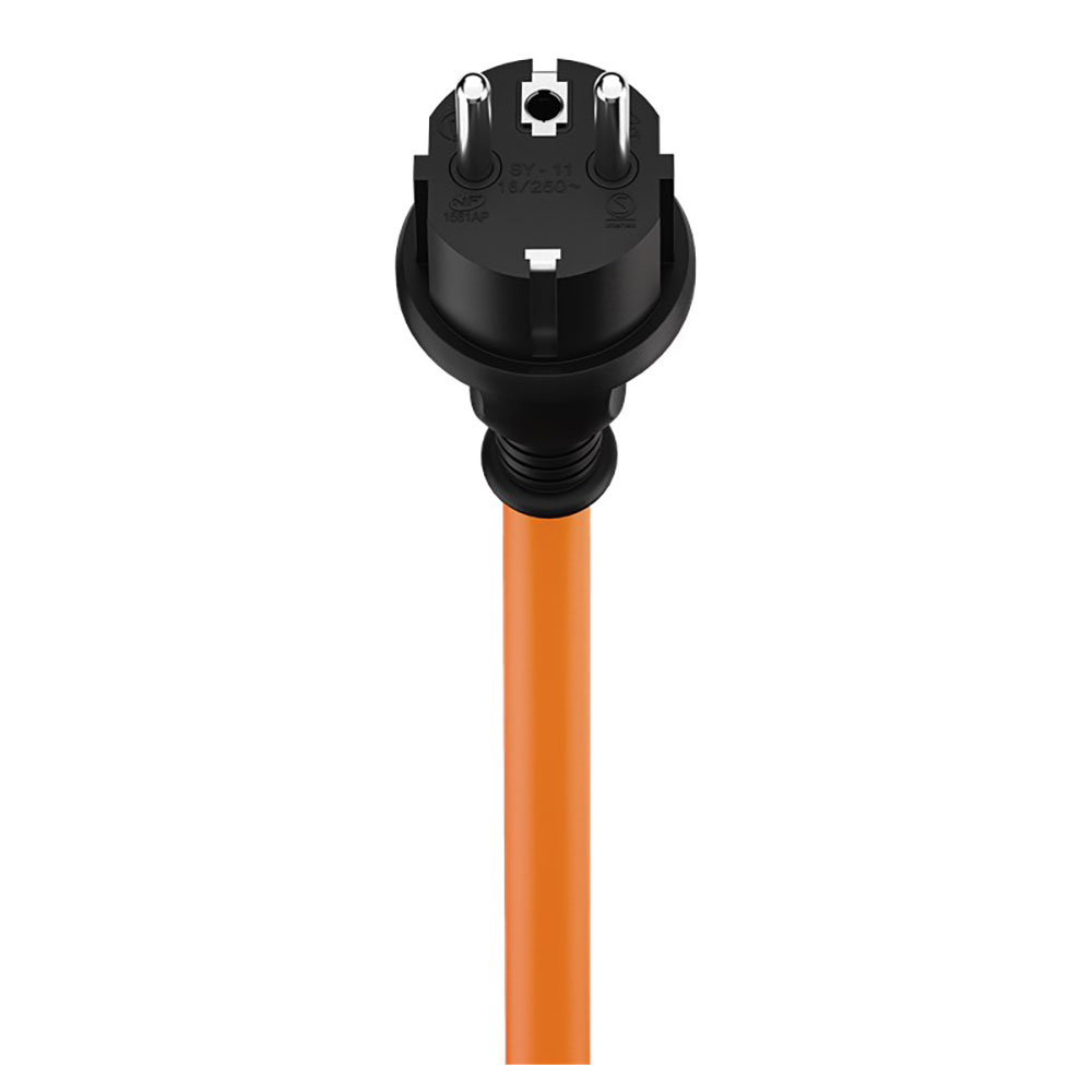 - Die orange Signalfarbe des Stromkabels sorgt für erhöhte Sichtbarkeit und erfüllt die Sicherheitsstandards auf internationalen Campingplätzen Die integrierte Verschlusskappe der Schutzkontakt-Steckdose schützt vor Staub, Schmutz und mechanischen Schäden