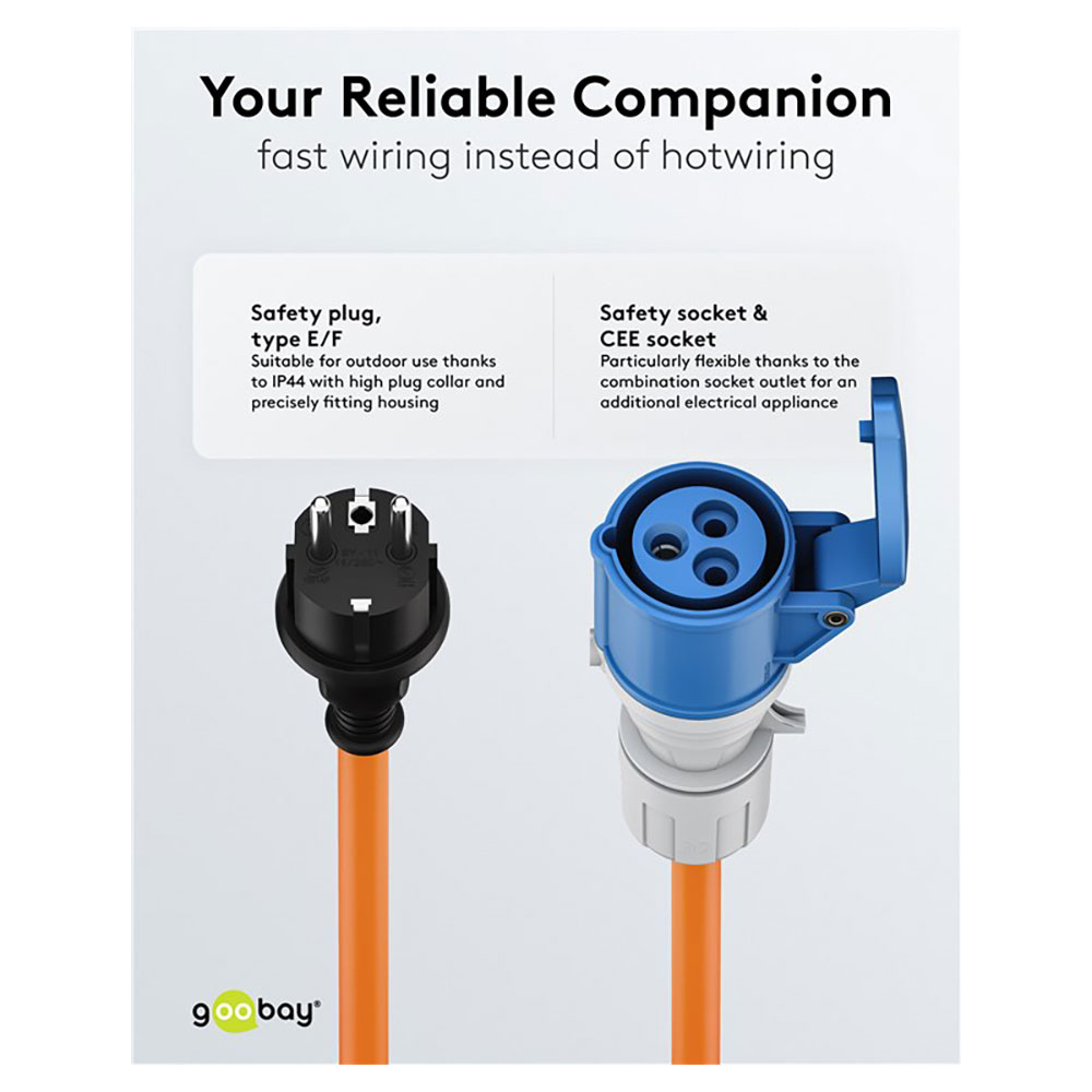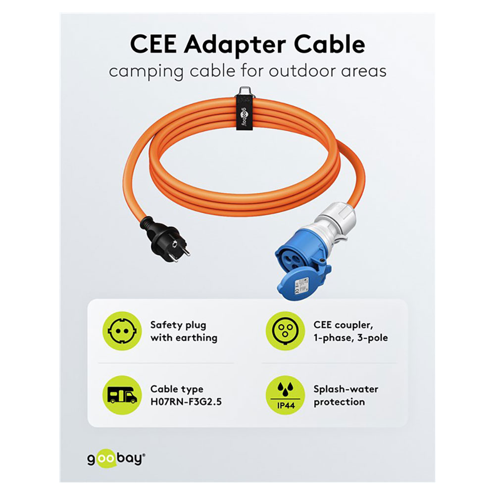 Produktinformationen "Goobay CEE-Adapterleitung Schutzkontakt-Stecker auf CEE-Kupplung Stromkabel 5m 16A 230V"