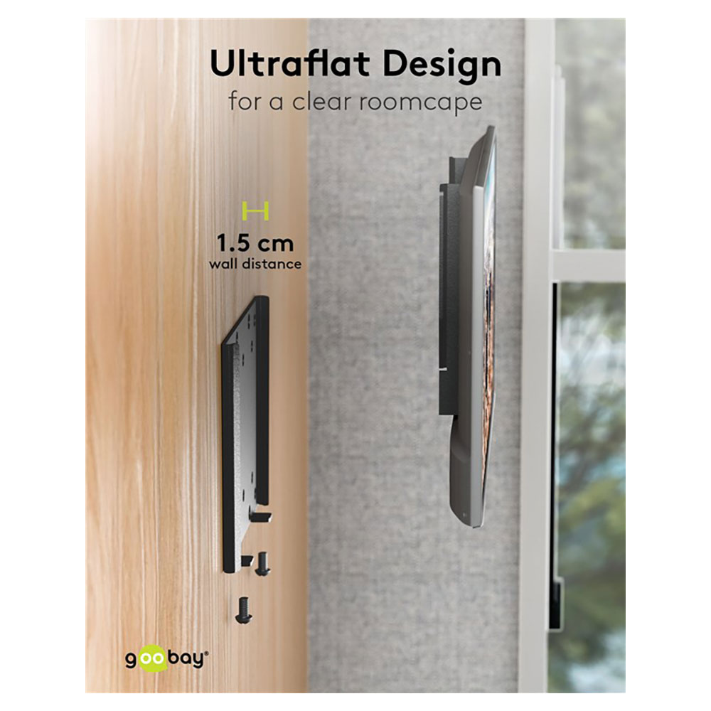 - Mit nur 18 mm Wandabstand ist die TV-Halterung besonders flach und platzsparend an der Wand zu befestigen