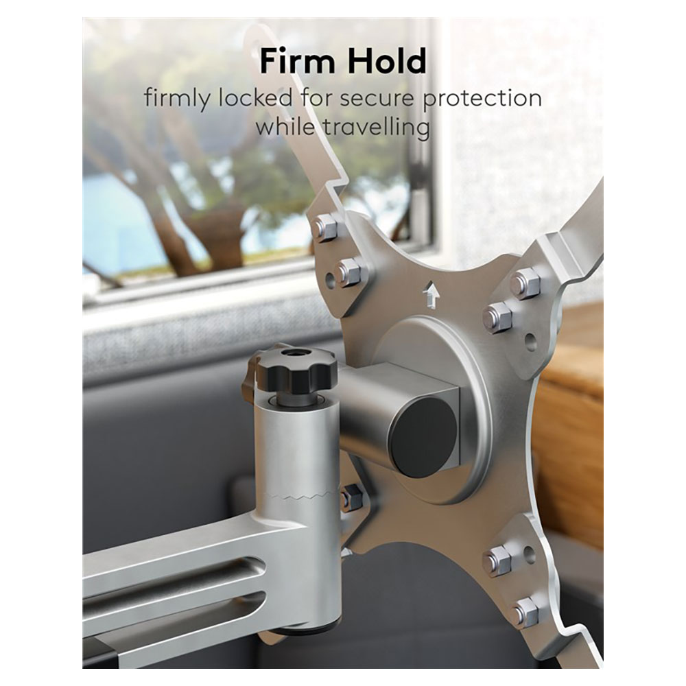 - Entworfen für den Einsatz im Wohnmobil oder Wohnwagen, verfügt der Wandhalter über einen Verriegelungsmechanismus und ein Anti-Vibrationsgelenk für sicheren Schutz während der Fahrt.