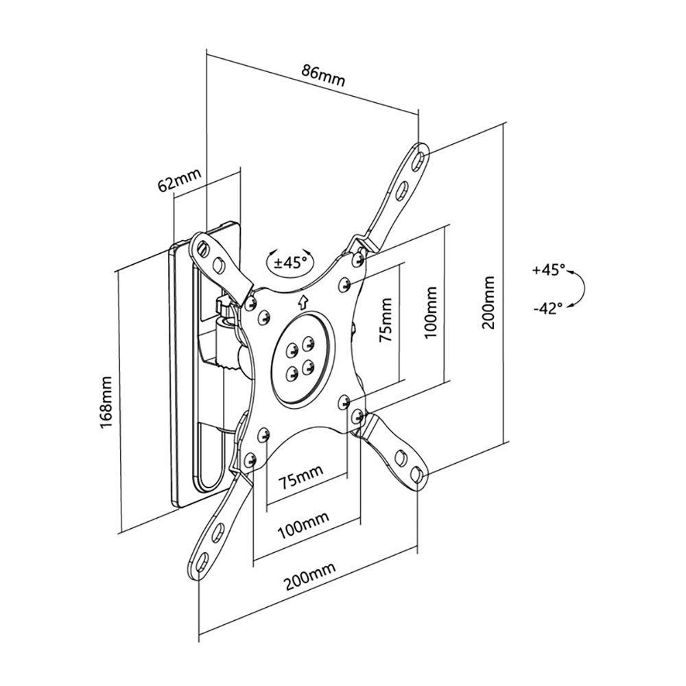 - Perfekt für die stabile Wandmontage eines mittelgroßen Fernsehers bis 15 kg, für den idealen Blickwinkel +45/-42° neigbar und ±45° schwenkbar.