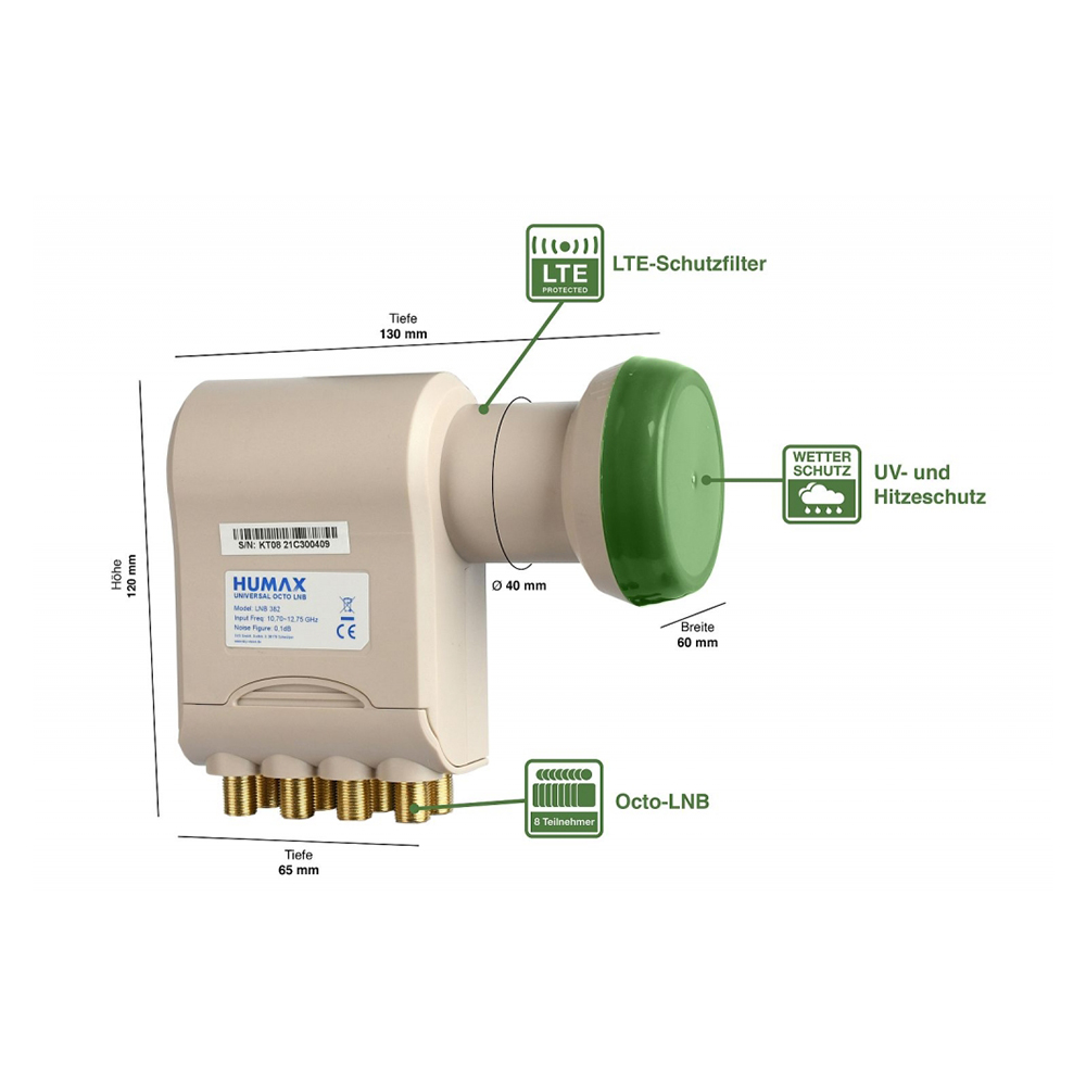 Produktinformationen "Humax Green Power Octo LNB 382 Sat Satelliten HDTV Octo-LNB 0,1dB nachhaltig"