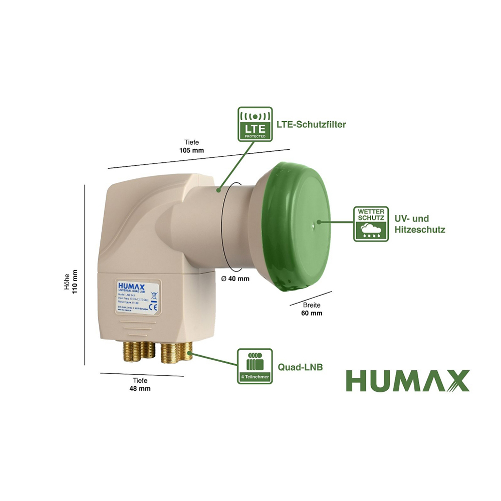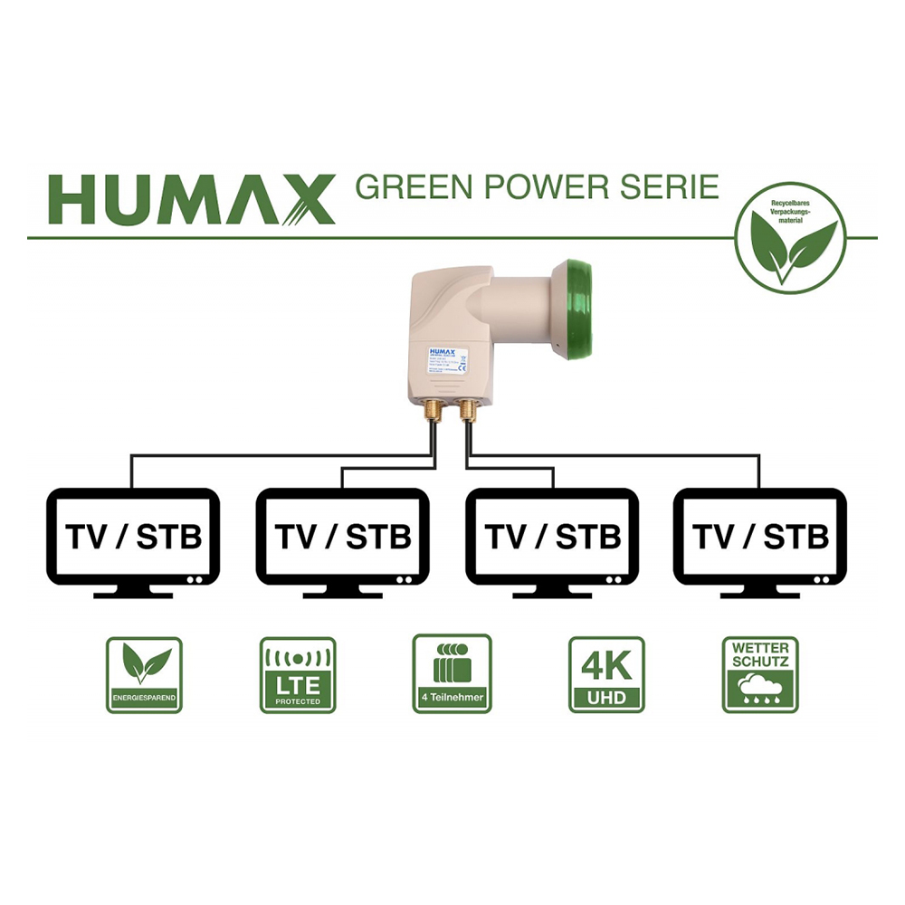 Humax Green Power Quad LNB 343 Sat Satelliten HDTV Quad-LNB 0,1dB nachhaltig