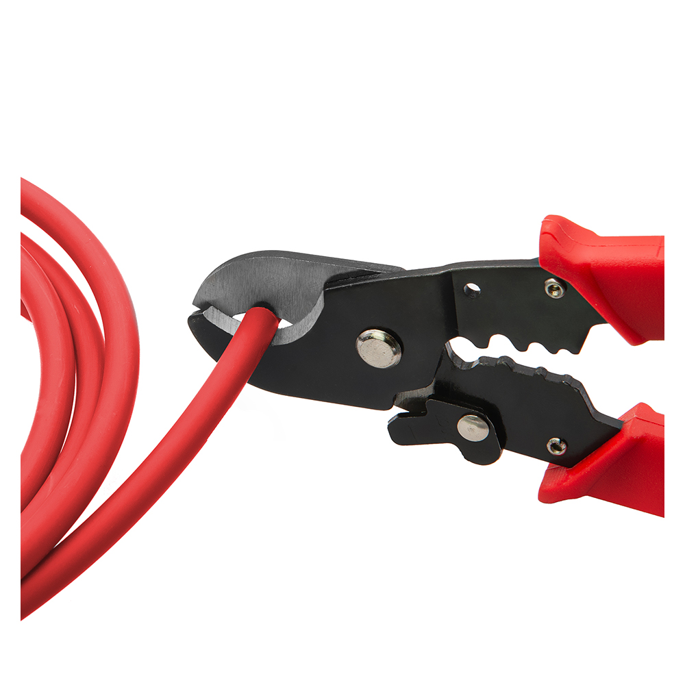 Die scharfen Klingen bewältigen Kabel mit verschiedenen Durchmessern absolut mühelos. Mit der integrierten Crimp-Funktion können Sie Kabelschuhe anbringen, ohne zusätzliches Werkzeug mitnehmen zu müssen.