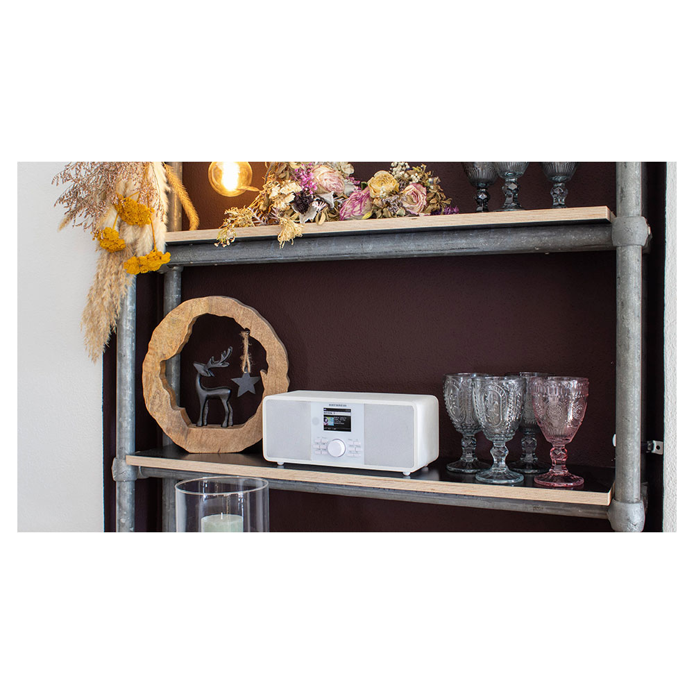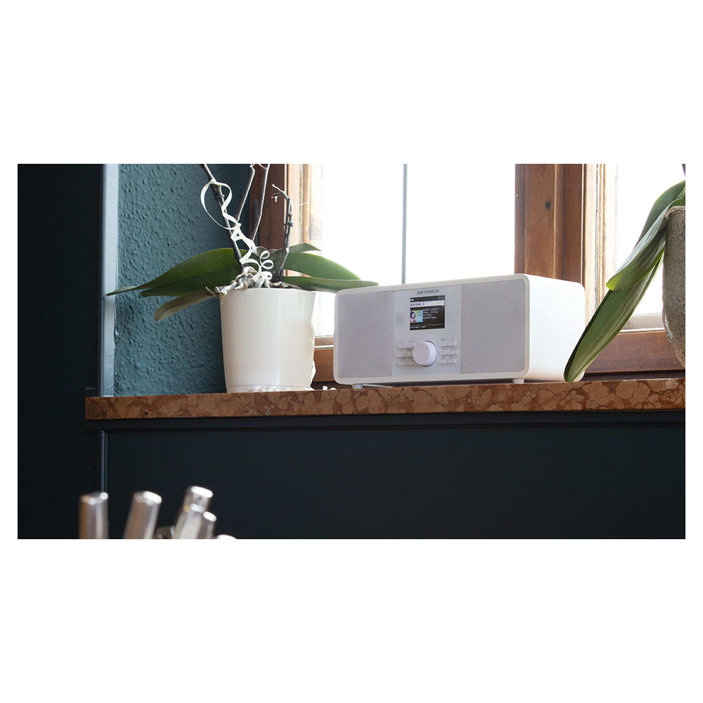 Es empfängt DAB+ und UKW-Radiosender, kann auf mehr als 25.000 Internetradiostationen zugreifen und bietet Zugang zu diversen Musik Streamingdiensten. Das Gerät unterstützt das EWF* Radio Warnsystem und Journaline Radiotext via DAB+. EWF ist ein auf dem DAB+ Sendenetz aufbauendes Alarmierungssystem, was im Katastrophenfall Warnmeldungen barrierefrei und innerhalb von Sekunden an EWF fähige DAB+ Radios übermittelt.