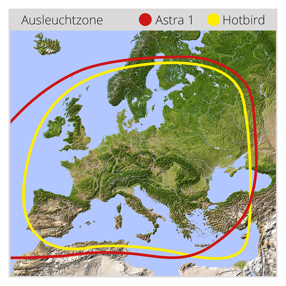 Der Empfang ist von allen deutschen Fernseh- und Radioprogrammen in den wichtigsten Urlaubsländern Europas möglich. Am Randgebiet der Ausleuchtzone kann es vereinzelt zu Empfangsstörungen kommen. Das liegt zum einen daran, dass die Reichweite der einzelnen Sender unterschiedlich ist und die aktuellen Witterungseinflüssen wie z. B. Regen, Schnee oder Nebel den Empfang mindern können.