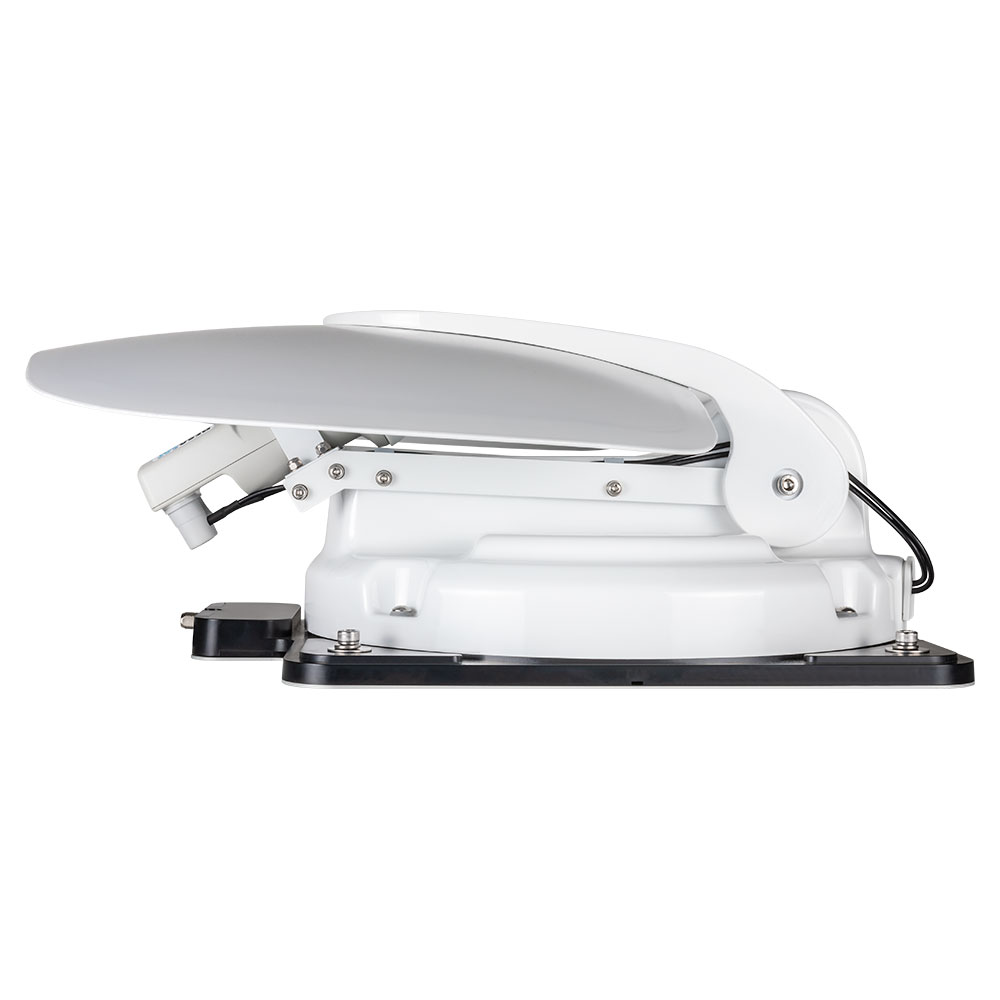 Kompakte Satellitenantenne mit nur 17 cm Aufbauhöhe und integriertem GPS für schnelle Ausrichtung. Geeignet zur Festmontage auf dem Fahrzeugdach.