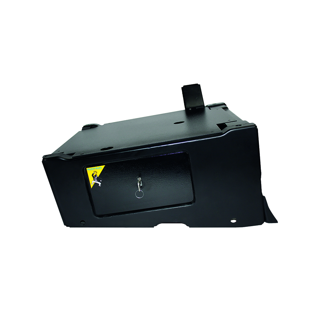 Der Einbau des Safekastens erfolgt in der serienmäßig vorhandenen Öffnung der Sitzkonsole an der Seite. Hierbei ist es wichtig, dass der Kasten mit der schmalen Aussparung nach oben in die Konsole eingeschoben wird.