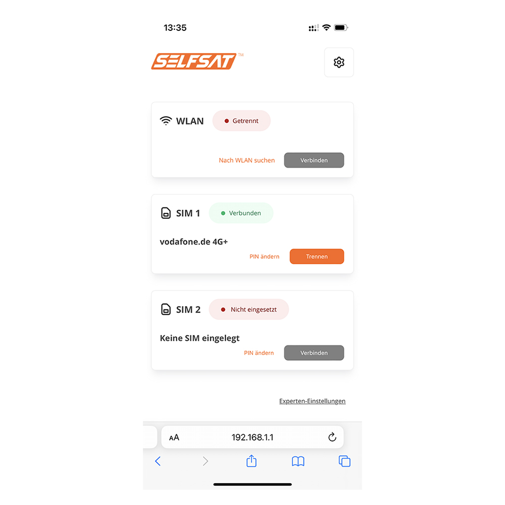 Die Verbindung mit dem WLAN Ihres Internet Routers ist so einfach wie im Hotel oder zu Hause. Die erste Verbindung kann dabei über die auf dem Internet-Router angebrachten QR-Codes, oder über den WLAN-Namen und das Passwort hergestellt werden. Nach Änderung des Passworts erfolgt die Verbindung über Ihr festgelegtes persönliches Passwort. Die Einrichtung und Bedienung der vereinfachten, benutzerfreundlichen Bedienoberfläche des Internet Router ist für Apple oder Android Smartphones, Tablets und Laptops gleichermaßen möglich und erfolgt über den Internet-Browser. Es muss dadurch keine App installiert werden.