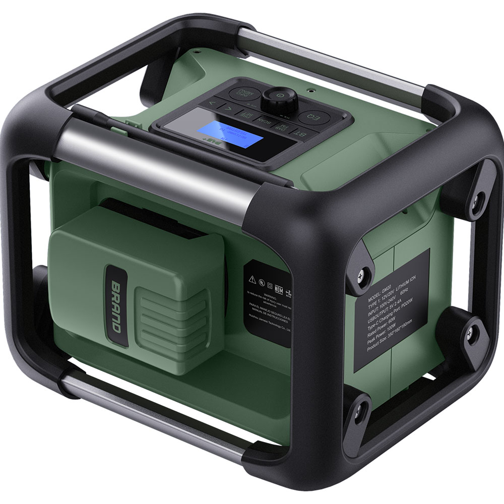 Das Outdoor-Radio besitzt ein massives Gehäuse mit stabilem Schutzrahmen und Frontgitter. Es widersteht Staub, Schmutz und Stößen – ideal für Baustellen, Werkstätten oder den Outdoor-Einsatz.