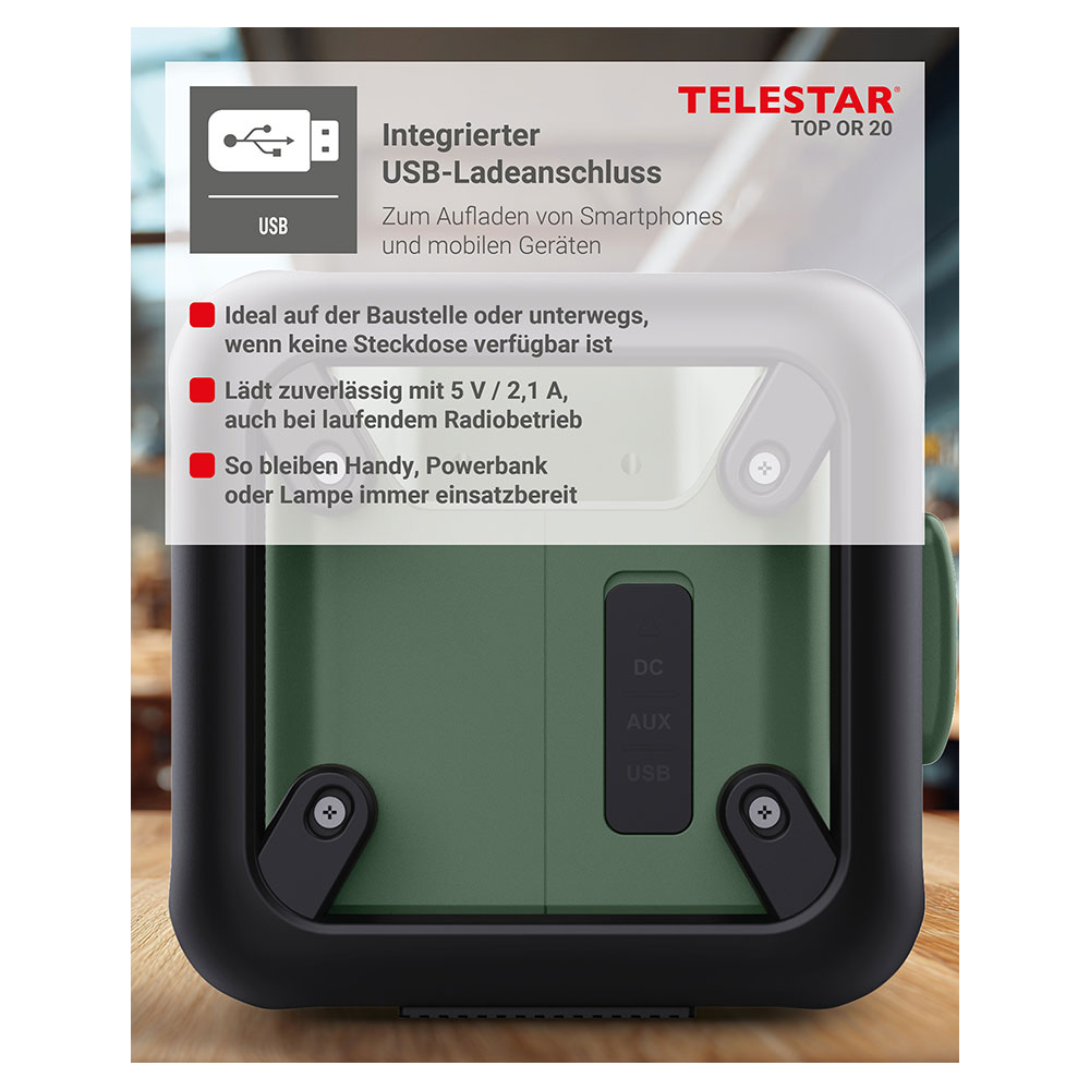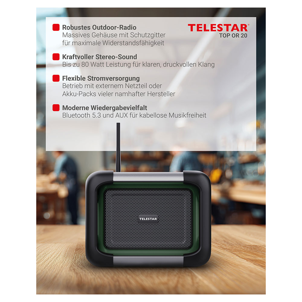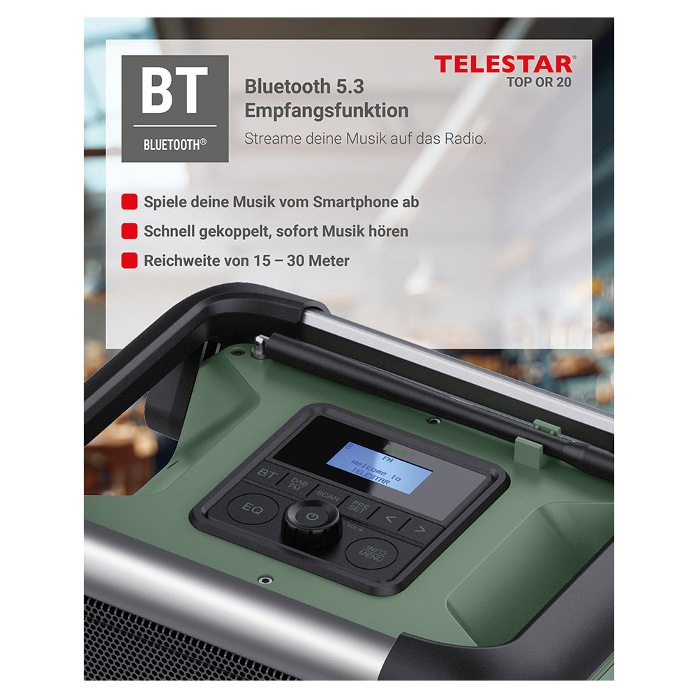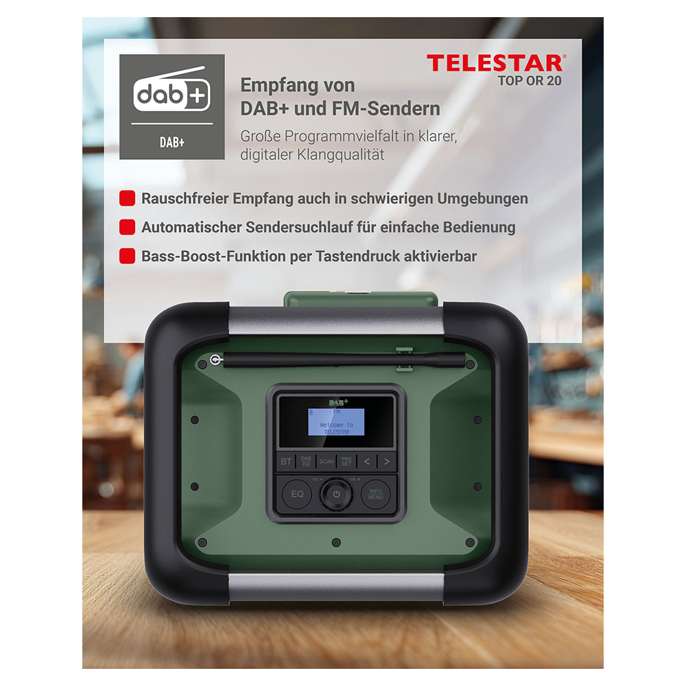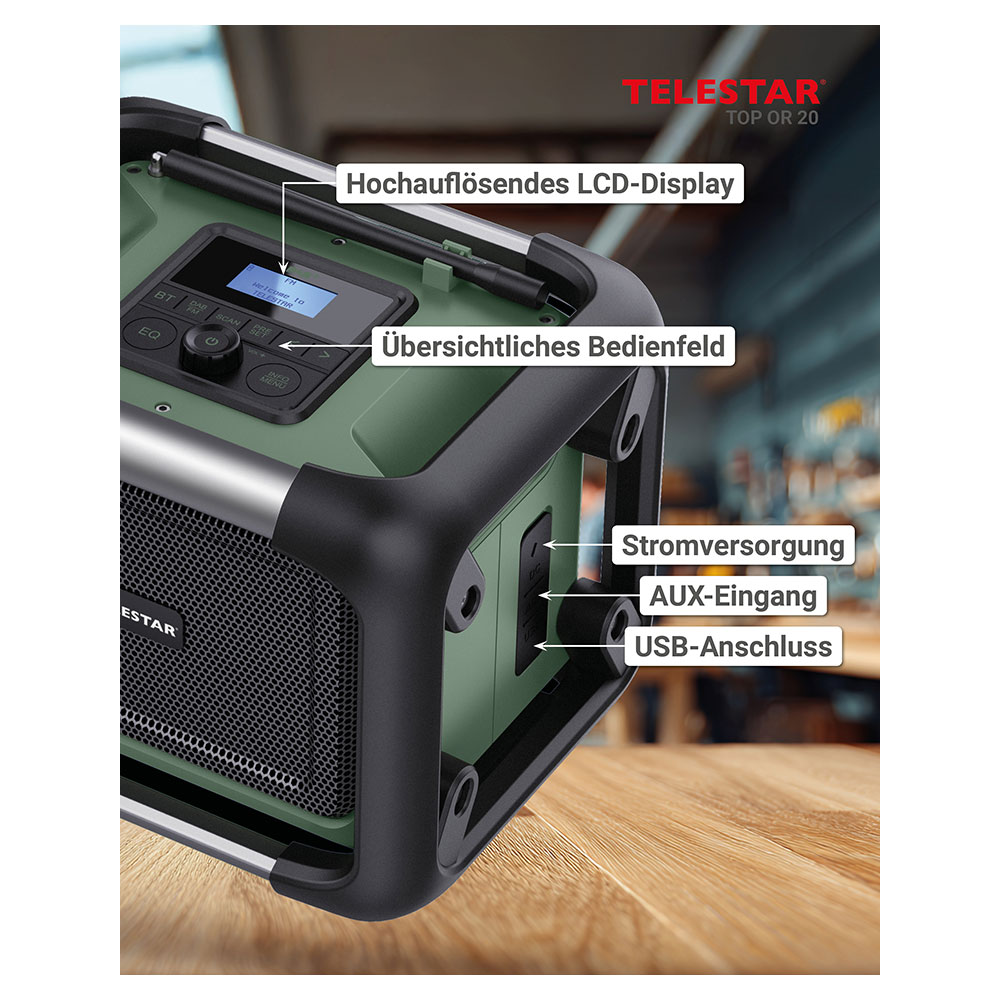 Produktinformationen "TELESTAR TOP OR 20 Robustes Outdoor-Radio mit DAB+/FM-Empfang Digitalradio Akkubetrieb Baustellenradio"