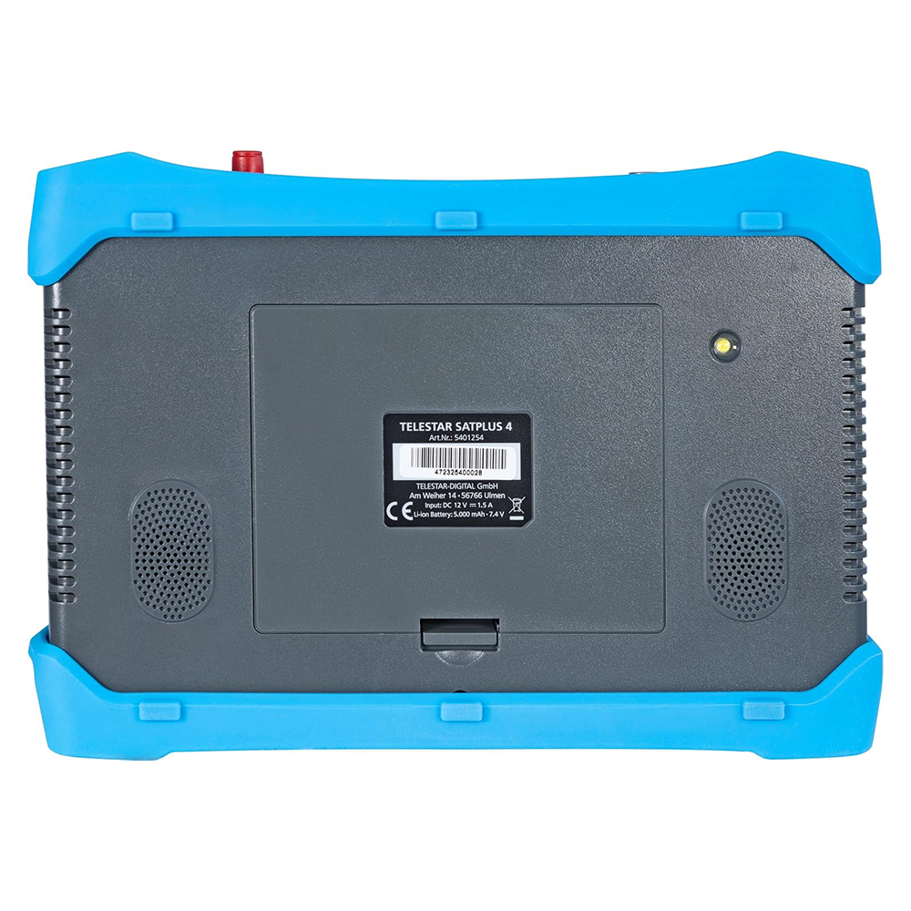 Der eingebaute Lithium-Ionen-Akku (7,4 V / 5.000 mAh) ermöglicht umfangreiche Messungen, die auf dem hochauflösenden 7-Zoll TFT-LCD Bildschirm in verschiedenen Ansichten dargestellt werden können. Der Sat Finder verfügt außerdem über einen integrierten Lautsprecher und eine Kindersicherung.