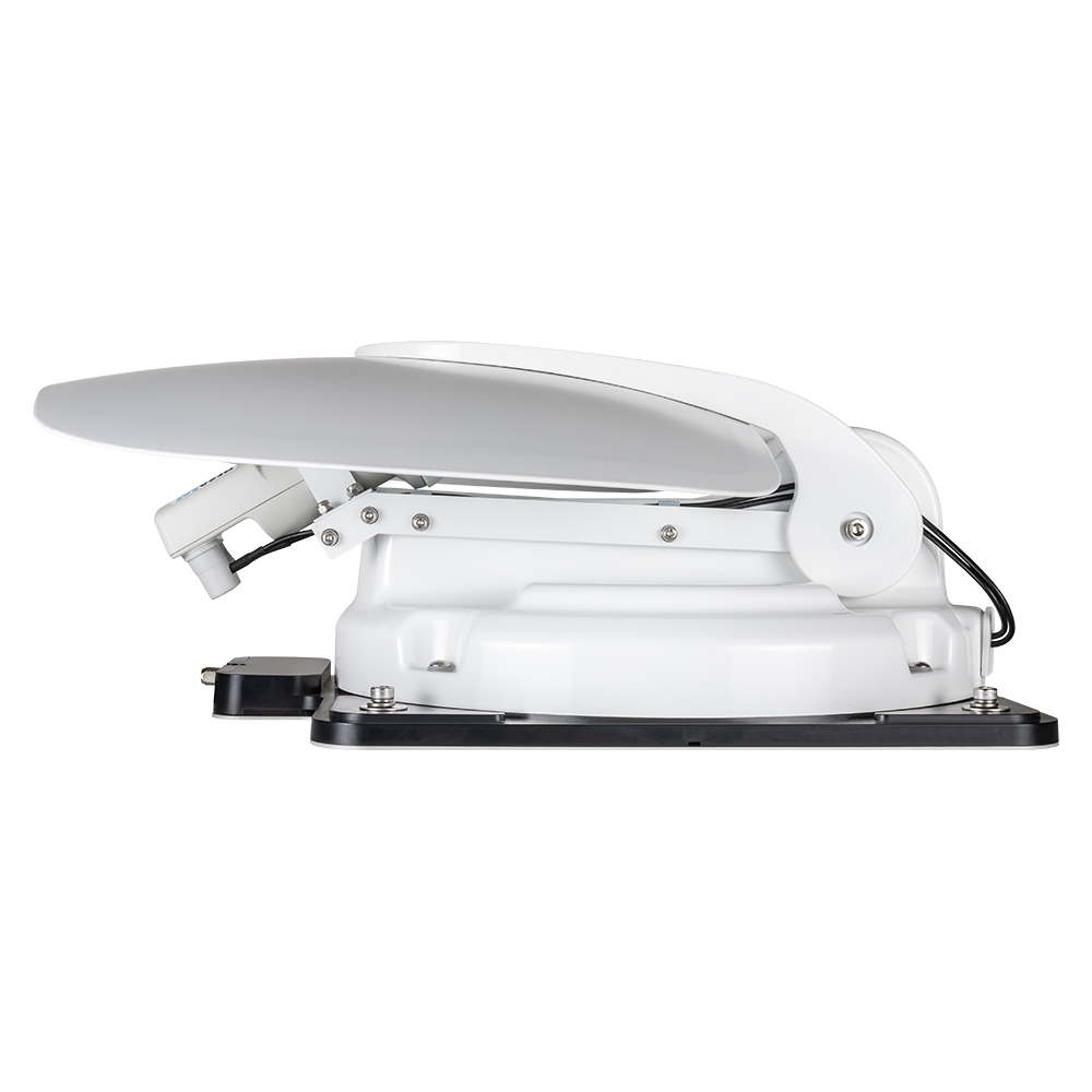 Kompakte Satelliten-Antenne mit bester Empfangsleistung. Nur 17 cm Aufbauhöhe im eingefahrenen Zustand. Single-Anschluss für einen Teilnehmer. Smartes Steuergerät mit kostenloser App für Firmware-Updates und Satellitenwechsel.