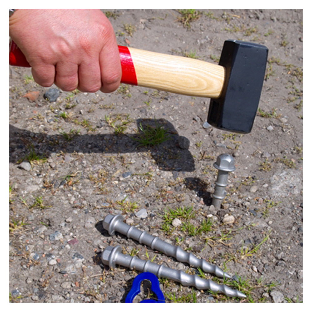 Eingeschlagen wird er mit einem Hammer und ausgeschraubt mit einem Handschlüssel oder maschinell. Er ist ausschließlich für harte Böden konzipiert.