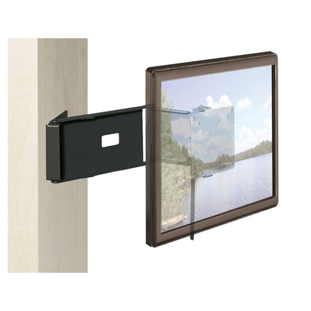 Besonders flache Halterung mit drei Drehpunkten. Verriegelbar, damit sich die TV-Geräte während der Fahrt nicht bewegen. Halterung ist drehbar und schwenkbar.