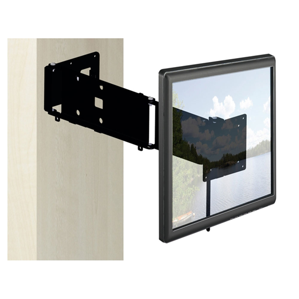 Kompakte Halterung mit drei Drehpunkten und sehr großem Schwenkbereich. Bei vielen Fahrzeugen so einsetzbar, dass sich das TV Gerät von der Sitzgruppe und vom Bett betrachten lässt. Verriegelbar, damit sich die TV-Geräte während der Fahrt nicht bewegen. Wandabstand ausgeklappt ca. 500 mm.