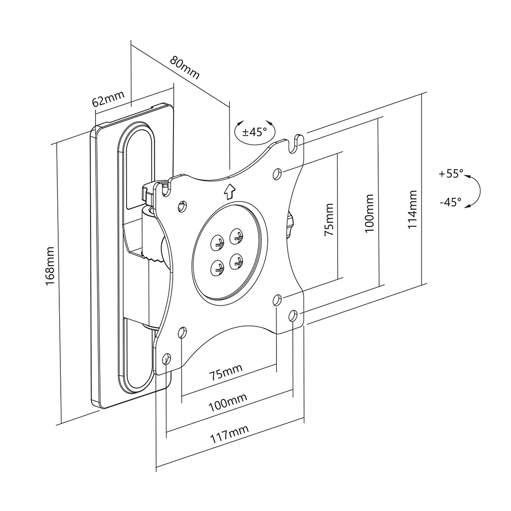 Die Wandhalterung für Fernseher kann flexibel geneigt und geschwenkt werden. Dadurch können Sie das Bild perfekt ausrichten. Sie haben immer die beste Sicht, ob Sie von der Sitzecke, beim Kochen oder dem Schlafbereich aus fernsehen möchten.