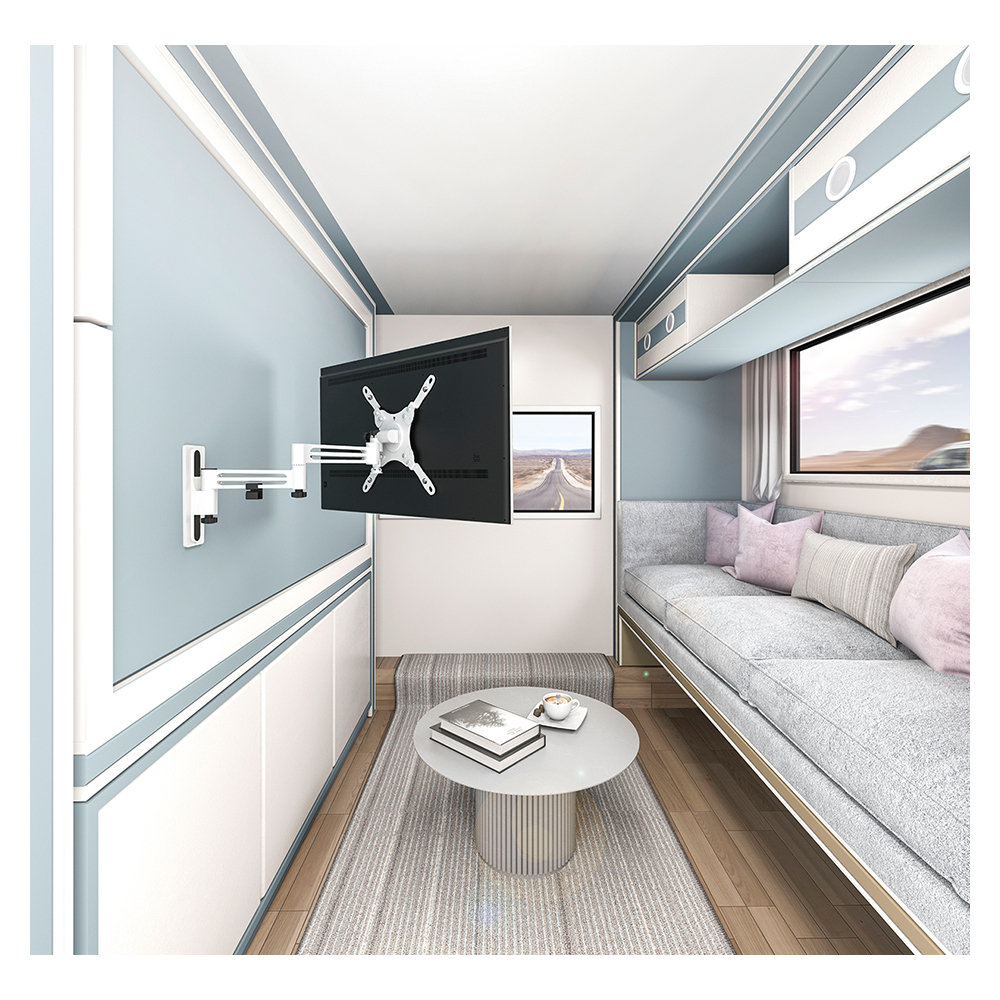 Der schwenkbare TV Wandhalter mit 3 individuell einstellbaren Gelenken verwandelt Wohnmobil, Wohnwagen oder Campervan in ein Heimkino auf Rädern. Die Halterung garantiert sogar größeren Fernsehern mit einer Bildschirmdiagonale von 13 - 43 Zoll (33 - 109 cm) maximalen Bewegungsfreiraum. Der besonders flexible Wandhalter lässt sich perfekt ausrichten, ganz egal ob Sie aus der Sitzecke oder gemütlich im Schlafbereich schauen möchten.