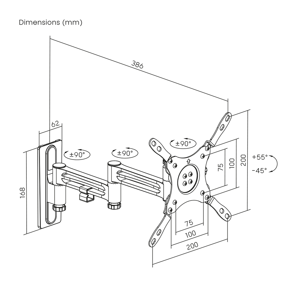 - Für VESA 75x75, 100x100, 200x100, 200x200 mm