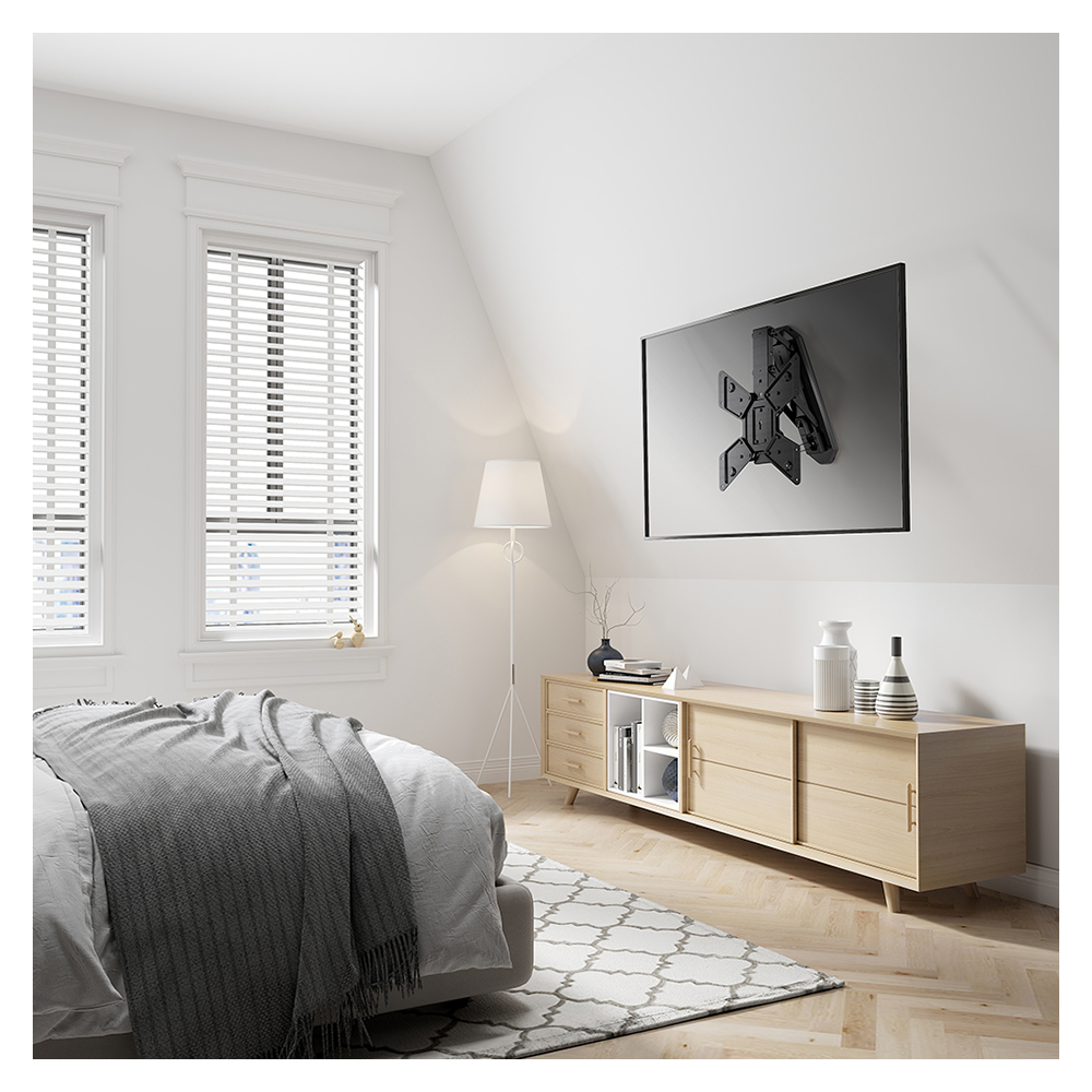 Ein weiterer Bestseller für Ihre Smart Home Anwendungen! Auch diese platzsparende Deckenhalterung ist mit einer Smart Funktion ausgestattet und lässt sich somit bequem per Smartphone steuern. Mithilfe der zuvor heruntergeladenen App oder auch per Fernbedienung kann diese bis zu 75° angewinkelt werden und verfügt darüber hinaus über eine Memory Speicher-Funktion. Ausgestattet mit einem leistungsstarken Motor, sorgt dieser dabei für den bestmöglichen Halt Ihres Flachbildschirmes. Dank der Klappfunktion unserer smarten Halterung können Sie besonders in kleinen Räumen auf Schränke verzichten und beugen somit Platzmangel vor.
