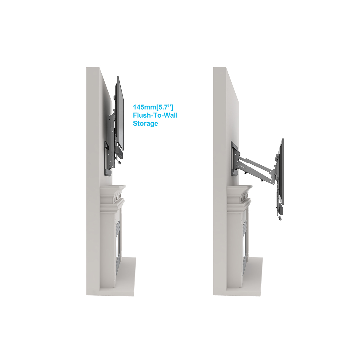 Die vollbewegliche TV Wandhalterung ist seitlich verschiebbar. Erleben Sie mit der 4-fach-Verstellbarkeit Fernsehen in einer neuen Dimension. Der Bildschirm kann an der Halterung horizontal verschoben werden. Zudem kann man ihn nach vorne und hinten neigen und nach rechts und links schwenken. Durch diese genaue Ausrichtung lassen sich unerwünschte Blendeffekte vermeiden und Sie können Ihre Filme und Sportereignisse bestens genießen.