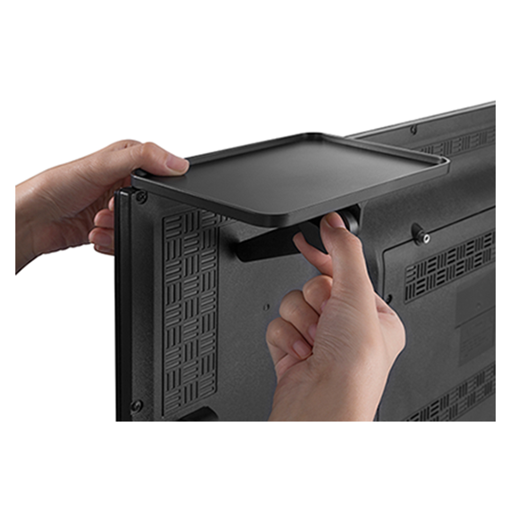 Ordnung schaffen leicht gemacht!Mit unserem Kickstand-Style-Regal bieten Sie Lautsprechern, WLAN-Routern, Fernbedienungen und mehr ein ideales Zuhause.Umlaufende Leisten und eine rutschfeste Oberfläche schützen Ihre Geräte vor dem Herunterfallen. Die solide Konstruktion bietet eine Aufnahmekapazität von bis zu 6 kg. Zur Montage und De-Montage des Mediaregals ist kein Werkzeug notwendig. Die Halterung passt sich den meisten Fernsehgeräten an: Ein praktischer Knopf verriegelt das Bein. Einfach aufklappen und an der Umrandung Ihres TV`s oder Monitor`s befestigen.   Ausstattungsmerkmale: Kickstand-Style TV-Regal Beschreibung:belastbar bis: 6 kg einfache Installation: Keine Werkzeuge erforderlich 300 x 127 mm Sicherheitsleisten rundum: verhindert das Herunterfallen von Geräten oder versehentliches Fallenlassen passt sich den meisten Fernsehern an: praktischer Drehknopf arretiert das Bein in der Position Lieferumfang: inklusive Montageanleitung Artikelzustand: Neuware mit Rechnung 2 Jahre Gewährleistung