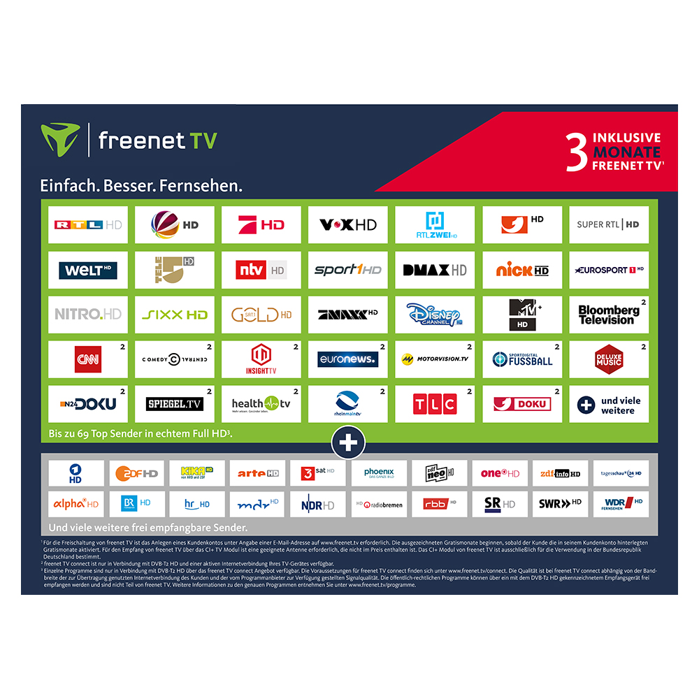 - Inklusive 3 Monate freenet TV