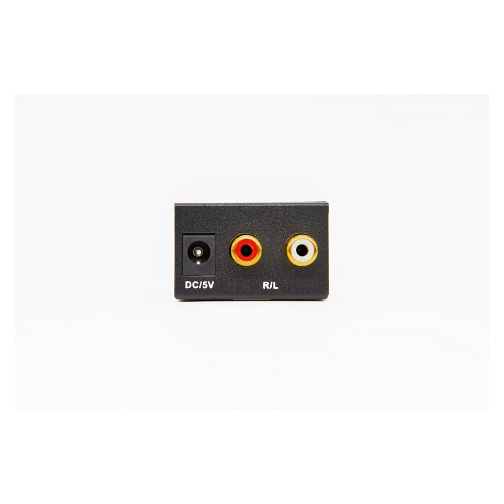 - Konvertiert Koaxial / Toslink auf analoge L / R Audio Signale