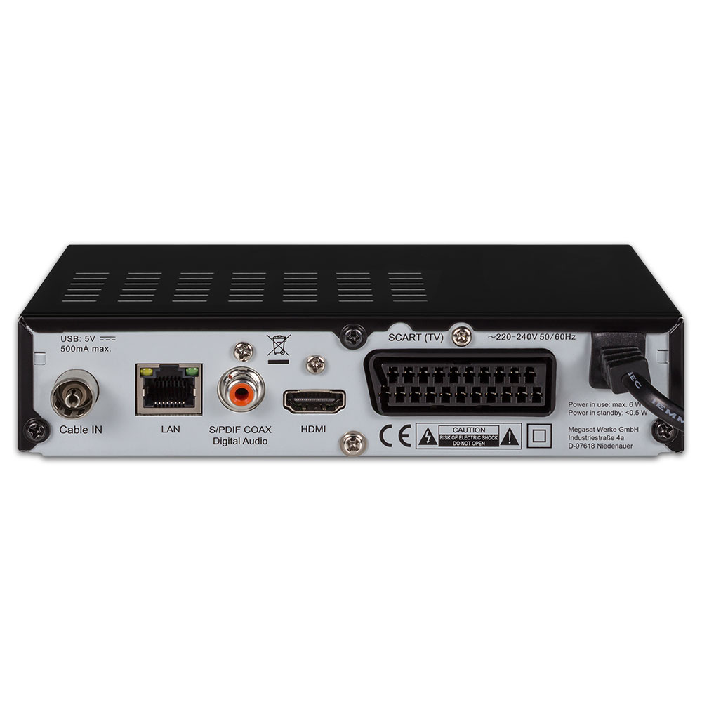 Der Megasat HD 200 C ist ein HD Receiver, geeignet für den Empfang aller freien TV- und Radioprogramme im Kabelnetz (DVB-C). Der HDMI Anschluss liefert eine Auflösung von bis zu 1080p und bietet somit eine überzeugende Bildbrillanz und Schärfe. Die gewohnt einfache Bedienung der Megasat Receiver bewährt sich auch bei diesem Modell.