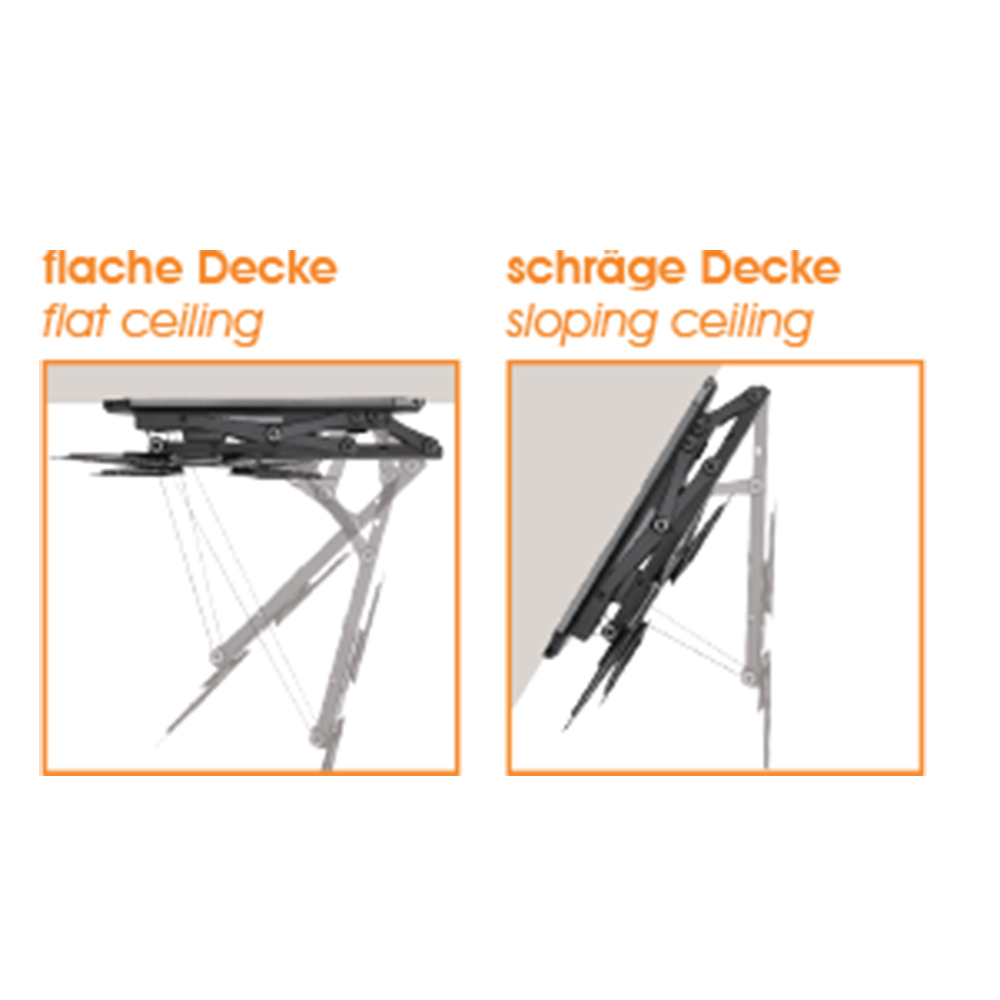 Gerade bei großer Raumhöhe erweist sich die klappbare, motorisierte my wall TV Deckenhalterung als verlässlicher Helfer. Dank der Infrarot-Fernbedienung bringen Sie Ihren LED- / LCD-TV oder Flatscreen-Monitor ganz Bequem aus der Distanz in die gewünschte Position. So können Sie auch etwa gemütlich im Bett Fernsehen, ohne dass Ihr Genick darunter leidet. Das beiliegende Montagematerial und die intuitiv erfassbare Aufbauanleitung garantieren einen schnellen und erfolgreichen Anbau.