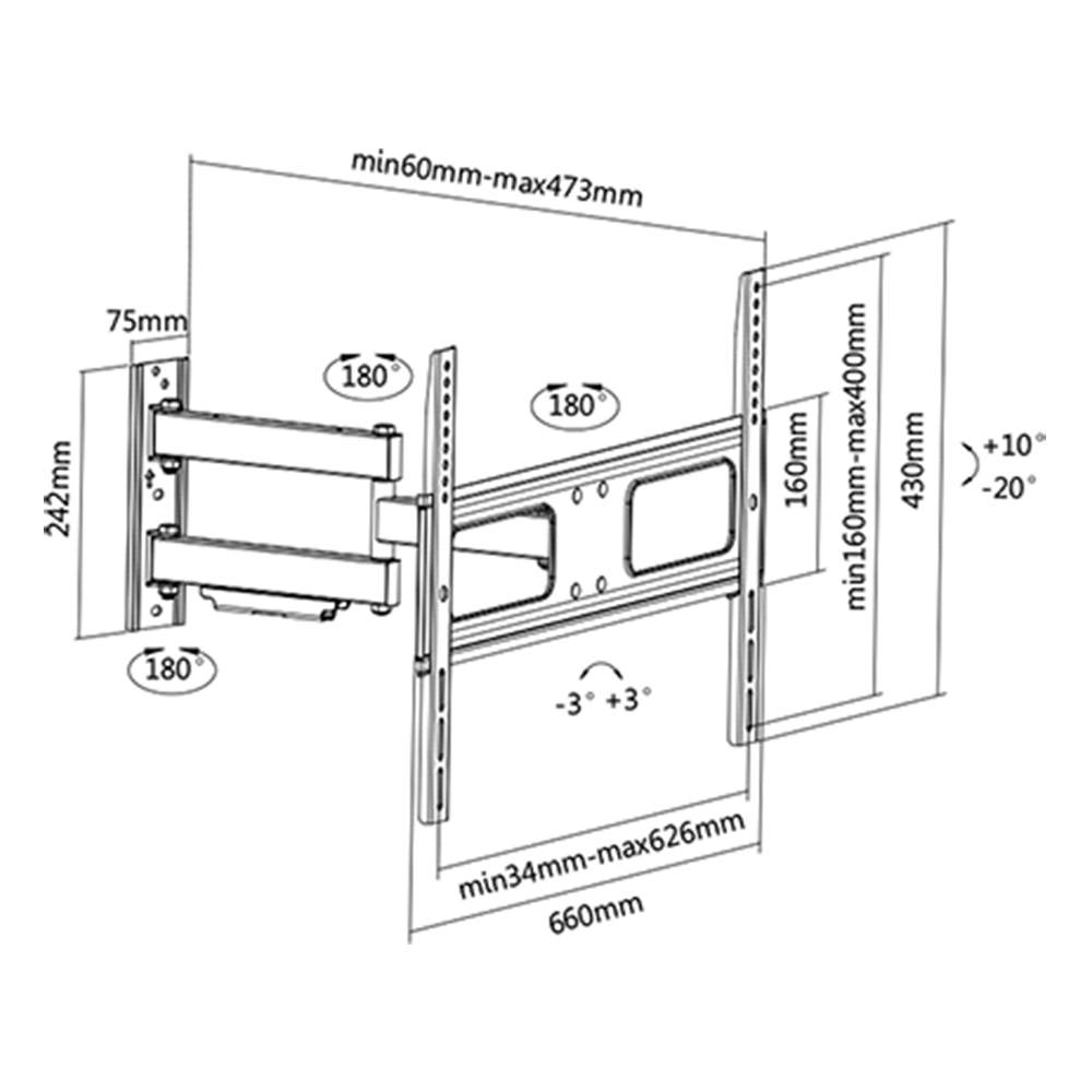 Geeignet für Bildschirmdiagonale: 23“ - 55“, 58 - 140 cm