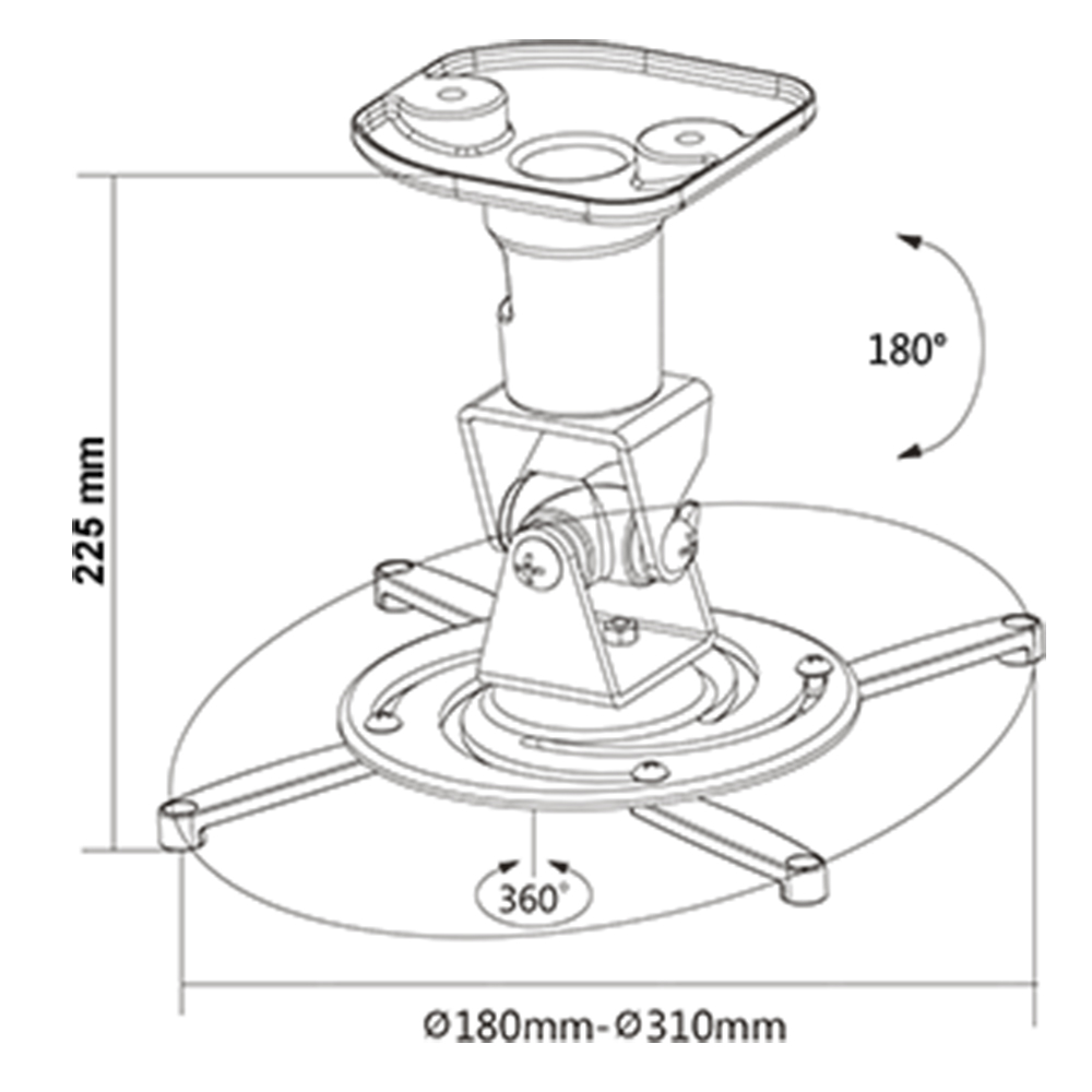 - einstellbare Neigung, einfach zu justieren durch Kardangelenk: 180°,